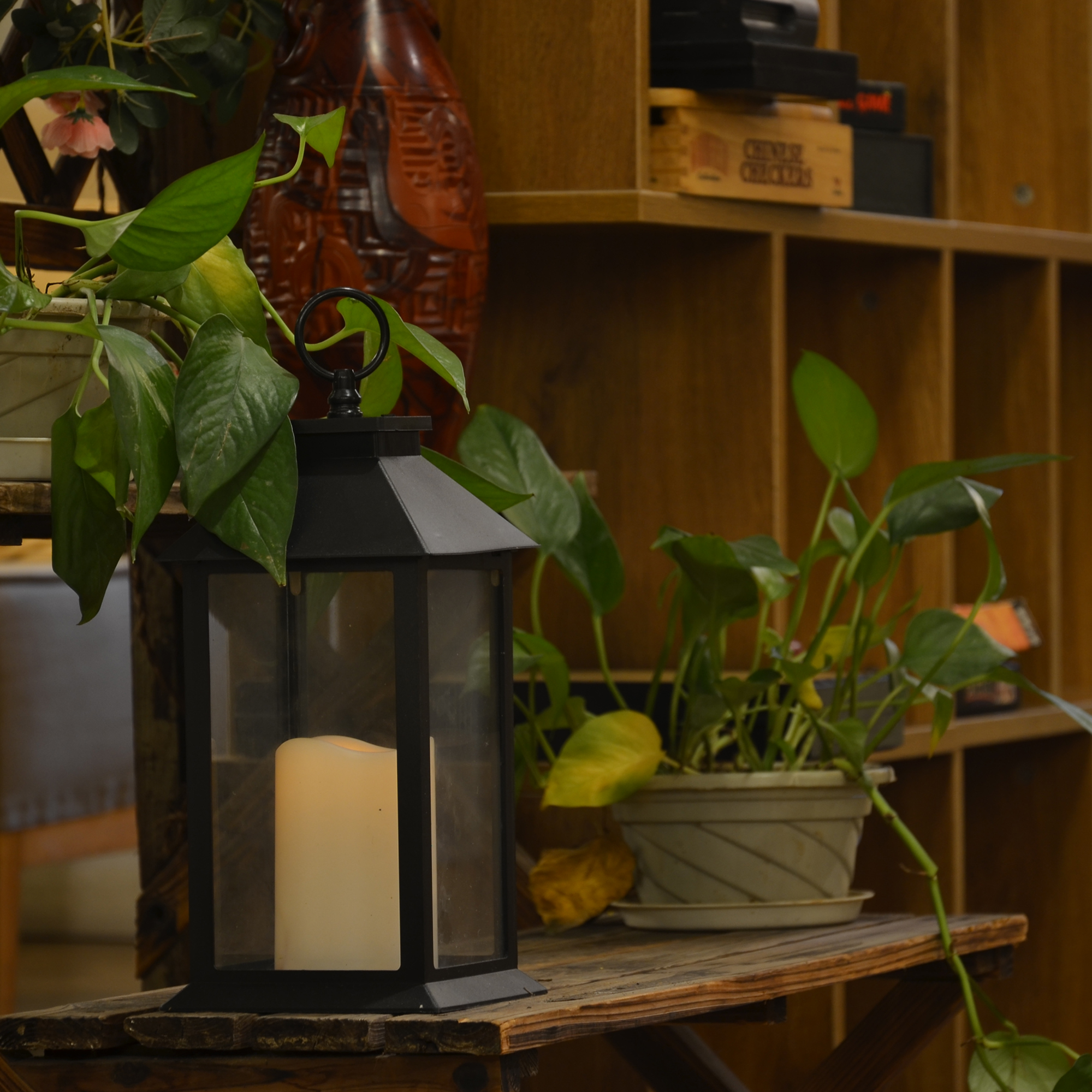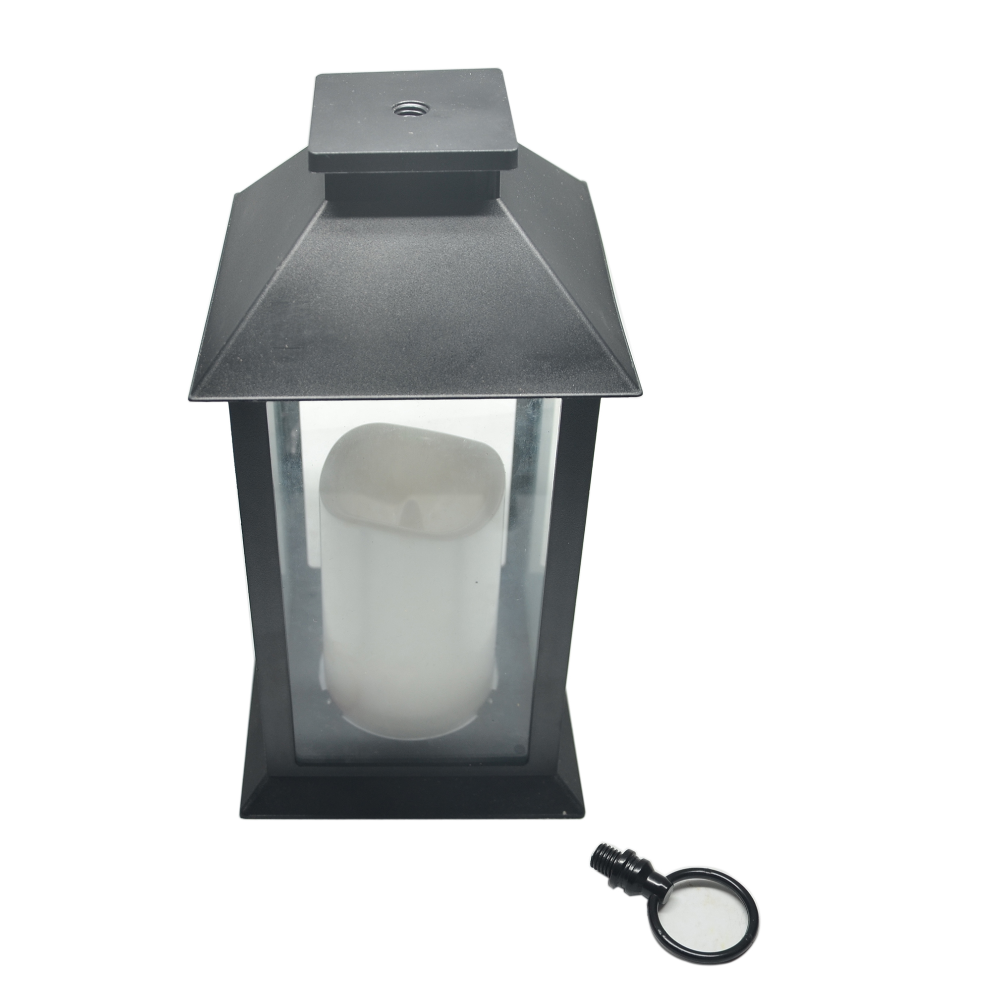 *Plastic Lantern with glass panes with led candle inside.