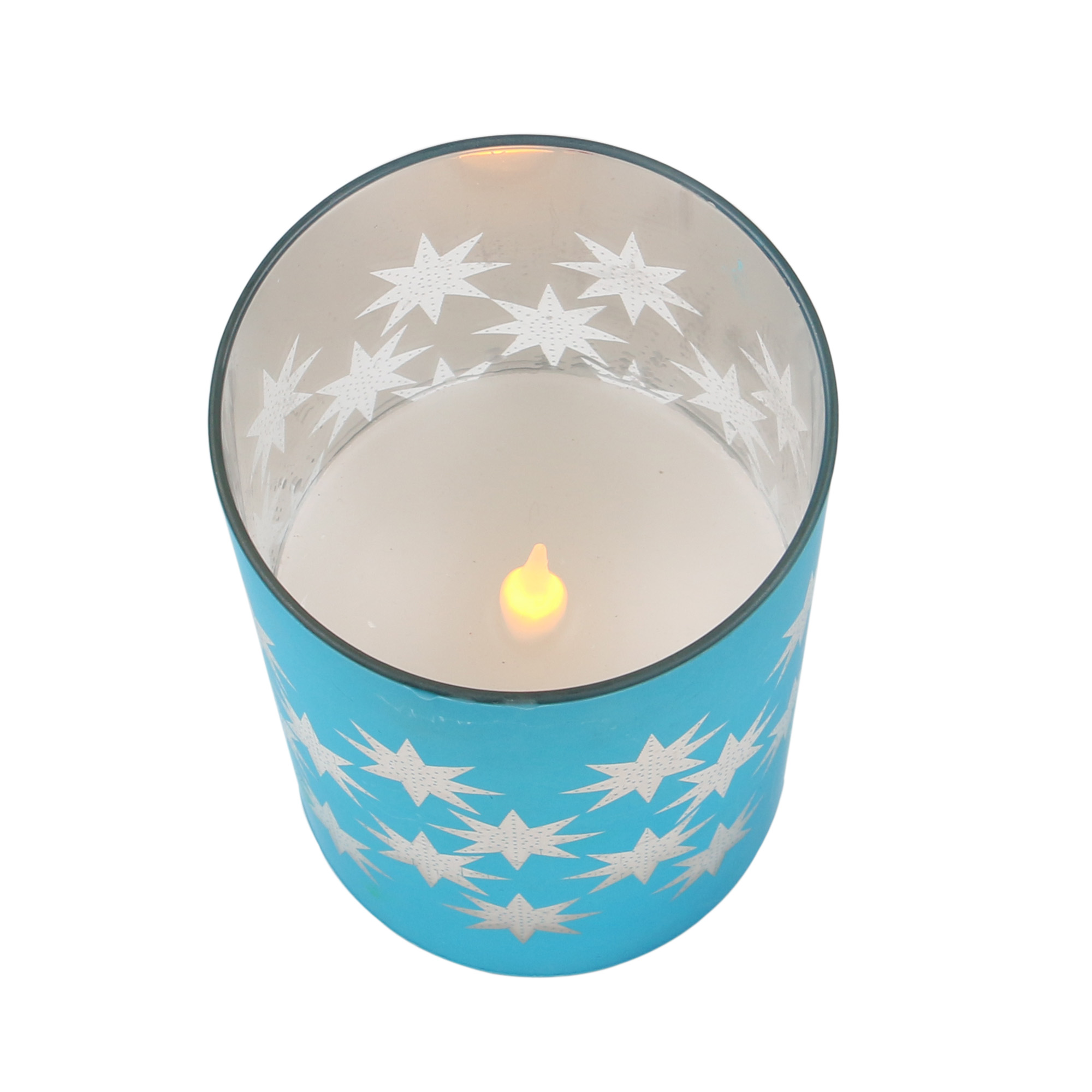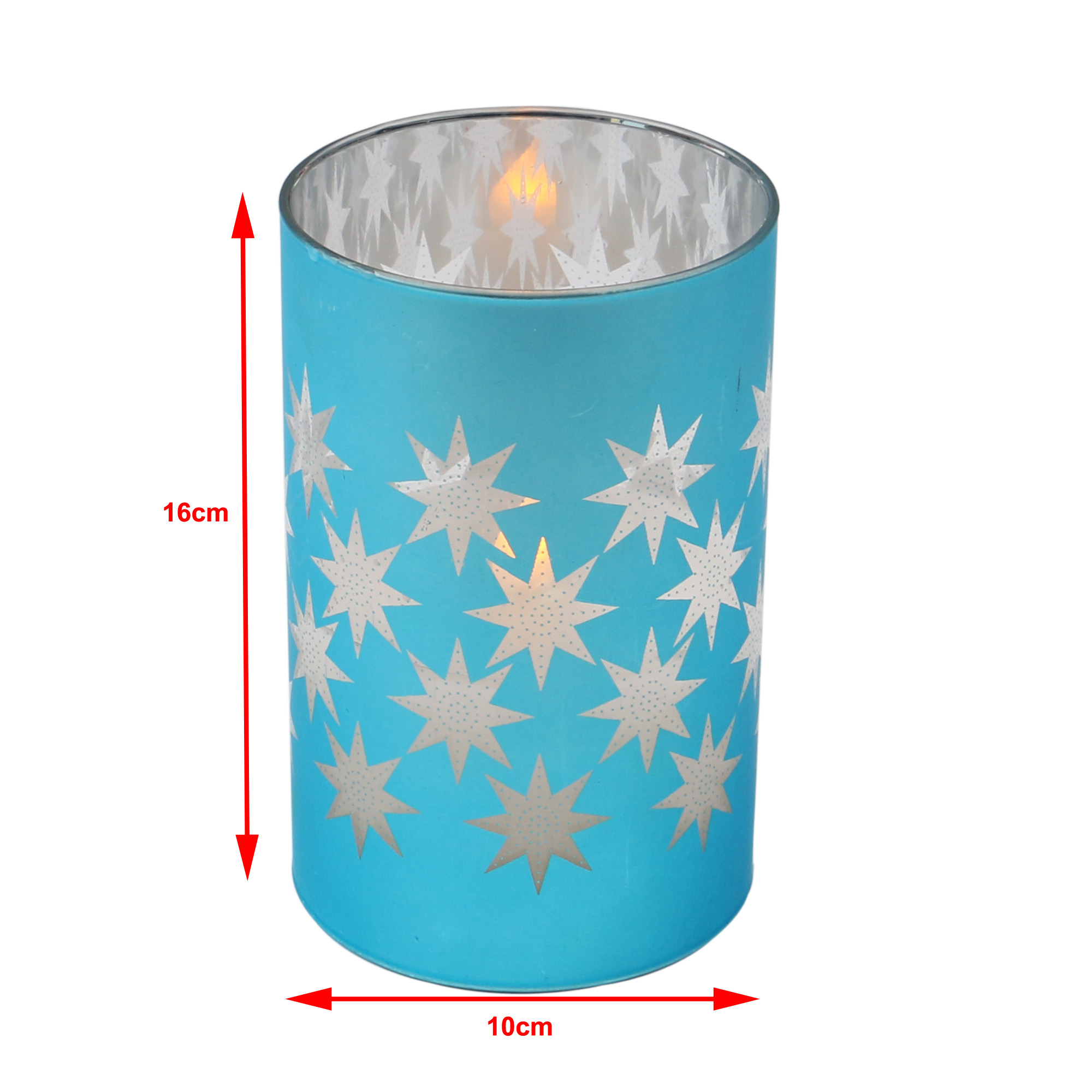 Metallic Colored Glass Filled LED Candle w/Timer - Blue