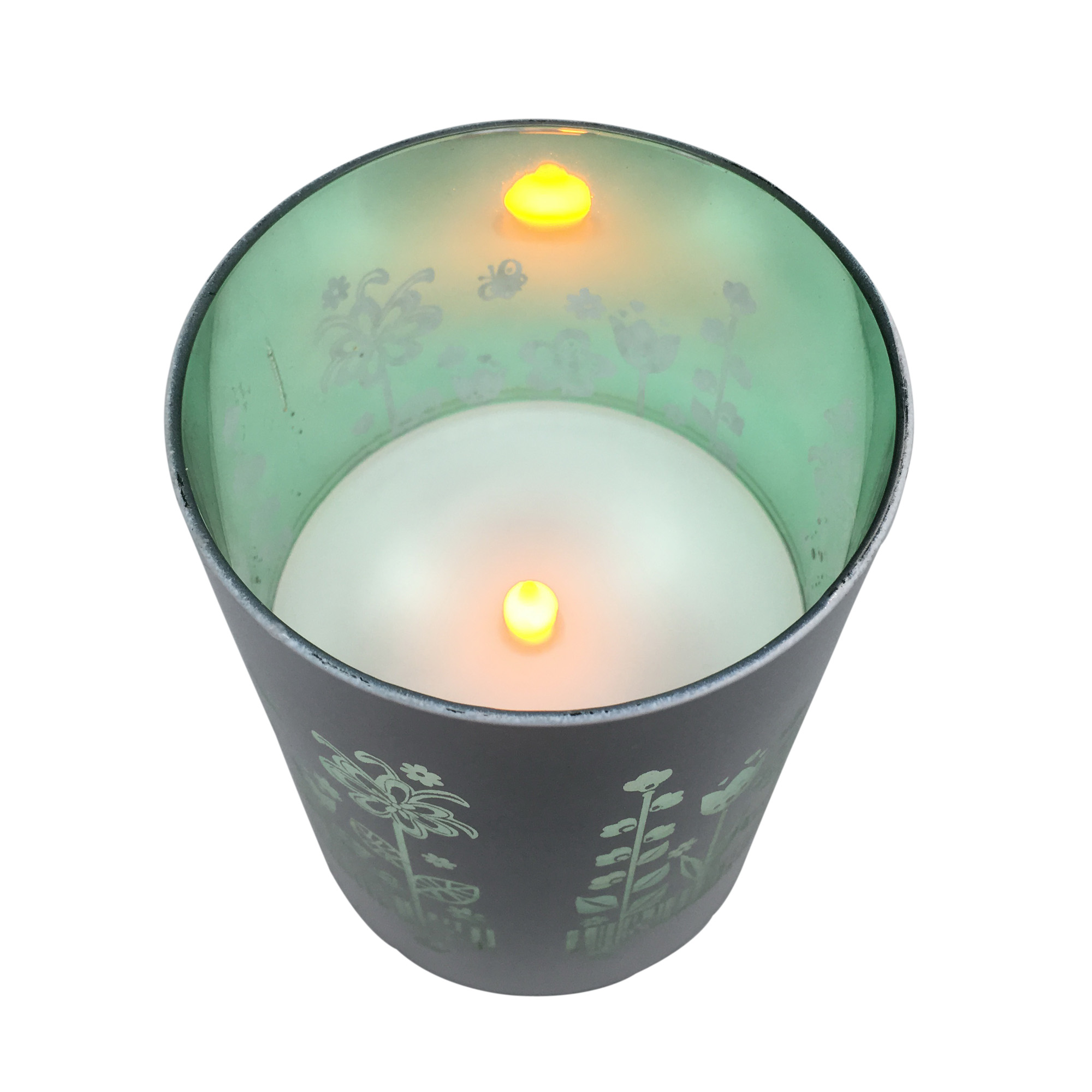 Metallic Colored Glass Filled LED Candle w/Timer - White w/Green